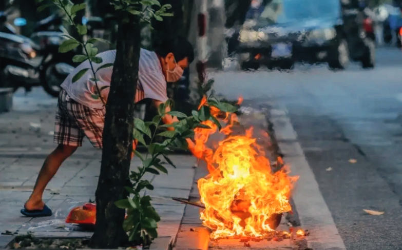 我老婆带着孩子站在路边没有进来,她看到这一幕大声喊着我的名字说赶快跪下。我“扑通”跪下,那片纸也缓缓地落在火堆里。