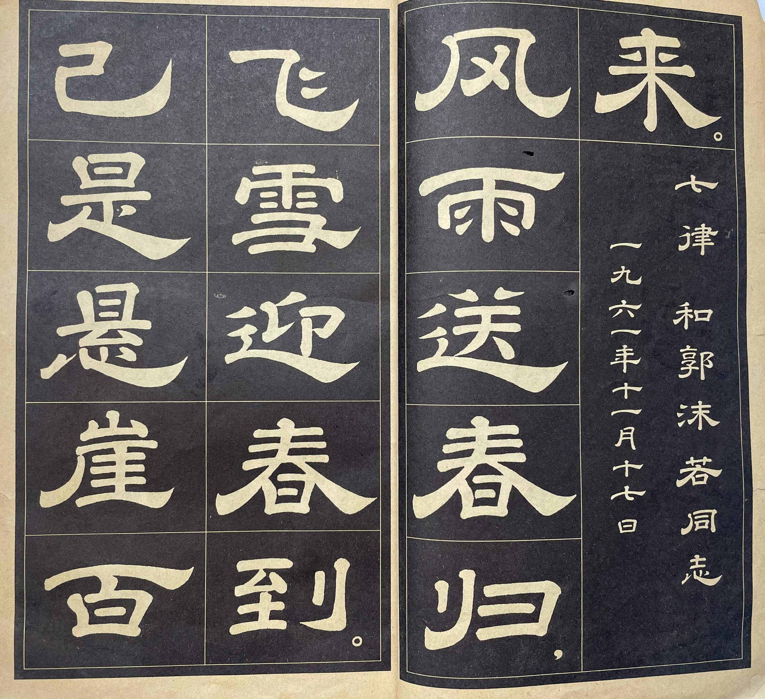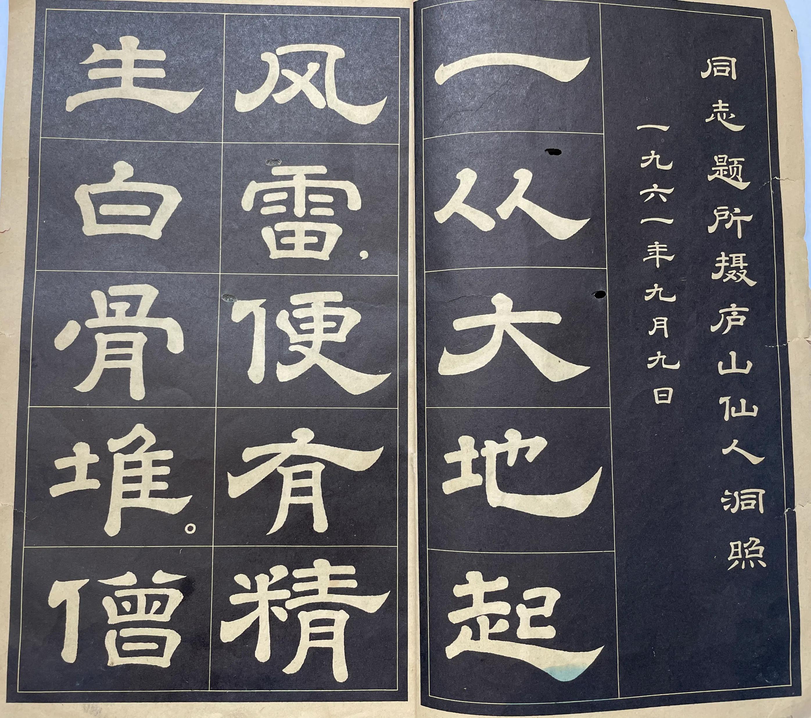 下面这本泛黄的隶书字帖《毛主席诗词》已经有53年了,是由东方红书画出版社于1968年8月出版的,主席爷爷伟大的一生留下很多诗词,我们一起来学习的吧。