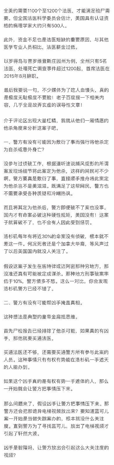 6月20日,蓝可儿尸检报告出炉,警方称其意外溺亡,患躁郁症。2013年9月19日,其父母向洛杉矶高等法院提起诉讼,状告女儿入住的酒店—塞西尔酒店,称其造成蓝可儿意外死亡。蓝可儿去世时,年仅21岁。
